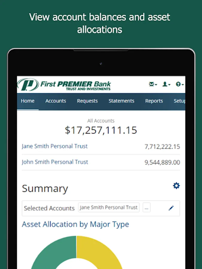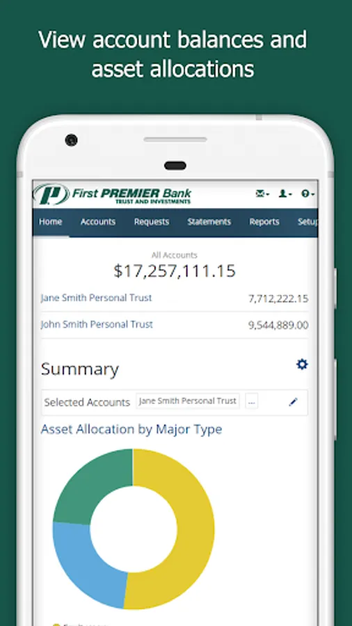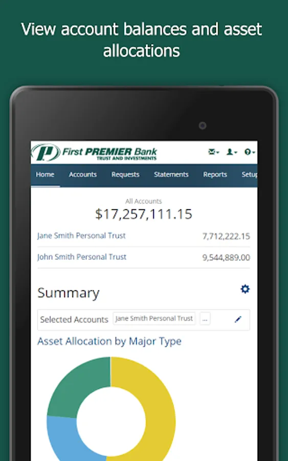 First PREMIER Bank’s Trust Online Mobile app allows you to quickly view your portfolio balances on the go. You can securely access your investment information whenever and wherever it is convenient for you! First PREMIER Bank’s FREE Trust Online Mobile app offers the following tools: