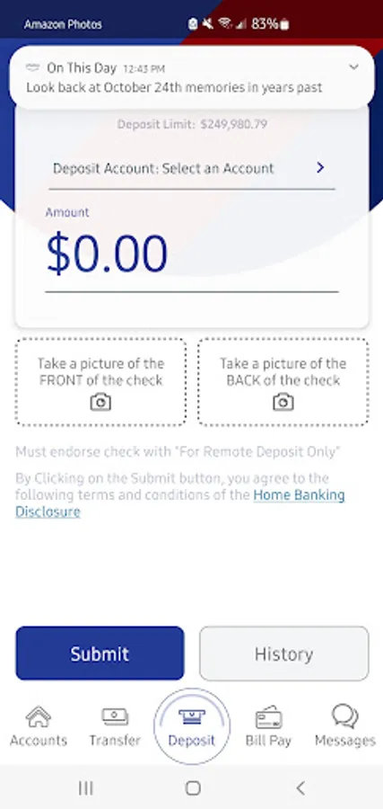 - Mobile Check Deposit