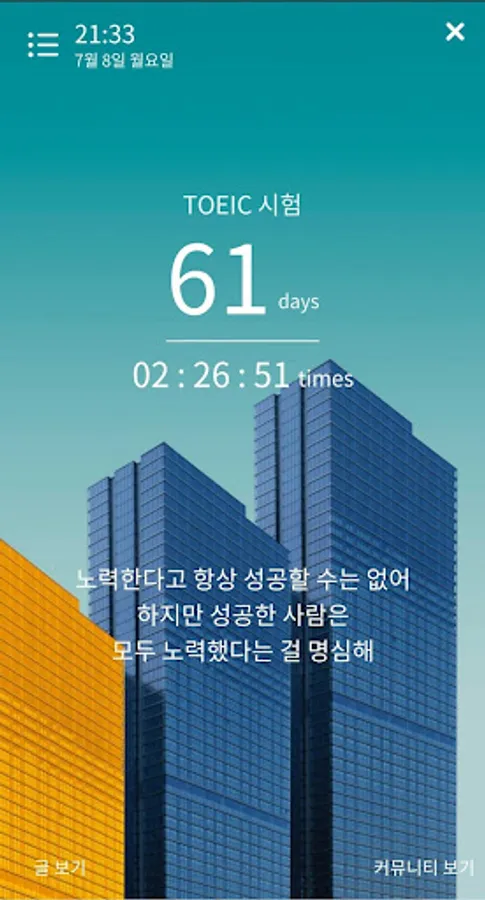 ★ The Day tells you how much time is left until the exam with the first screen and the D-Day widget.