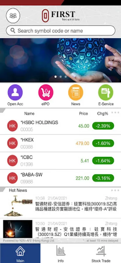 We are committed to provide customers with a full range of financial services, including securities trading services including HKEX (China Stock Connect), NYEX and NASDAQ, FTSE, TSE/TYO, OSE, TWSE, SET, SGX, ASX, and other markets. We also provide advice in investment and asset management services, etc. Customers can check their own assets anytime and anywhere via our mobile app.
