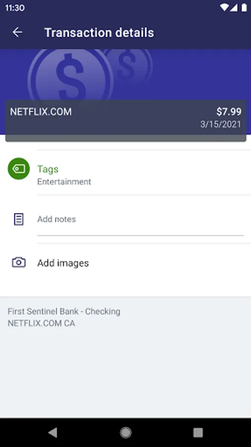 Keep your transactions organized by allowing you to add tags, notes and photos of receipts and checks.