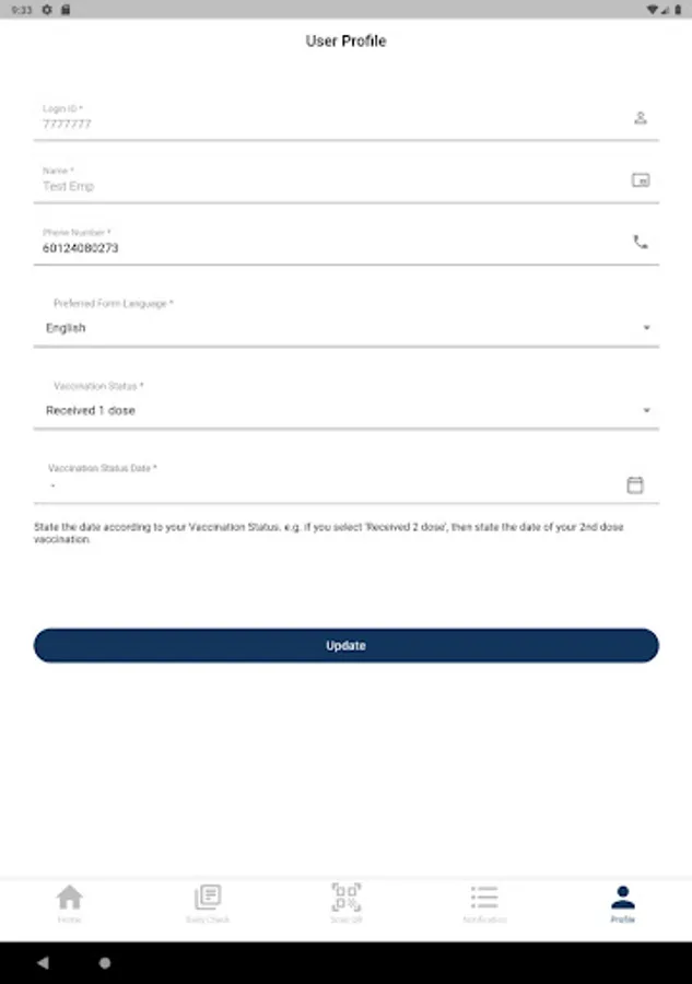 1. Daily self-declaration submission feature