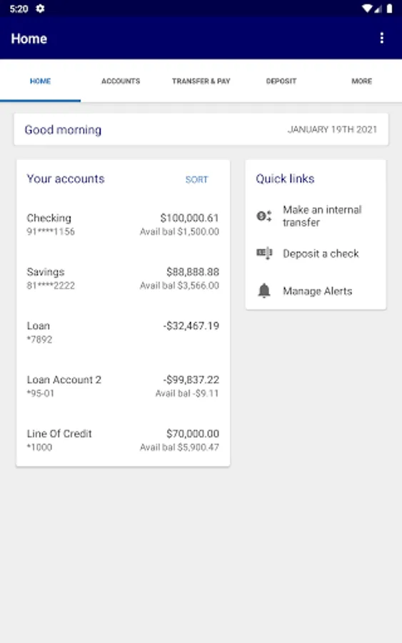 •.Make mobile deposits (submit photos of the front and back of checks).