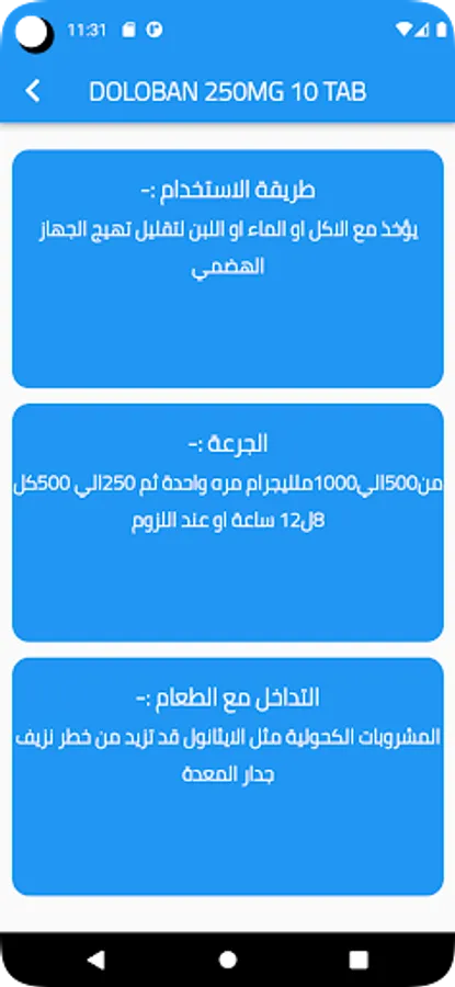 The application was designed by a team from the Faculty of Pharmacy, Alexandria University, with the help of (First Steps Mobile App) to help people with the correct way to dose medicines with active substances in order to prevent complications. Sources were reviewed from reliable international sites and under the supervision of a team from a professor at the Faculty of Pharmacy, Alexandria University. The application provides information about Egyptian medicines to raise awareness The patient interacts with the drug with the body, and the best times to take the drug, its dates, and its association with food. This application has reviewed doses and drug interactions by the College of Pharmacy team, thirty students, and under the supervision of the college doctors.