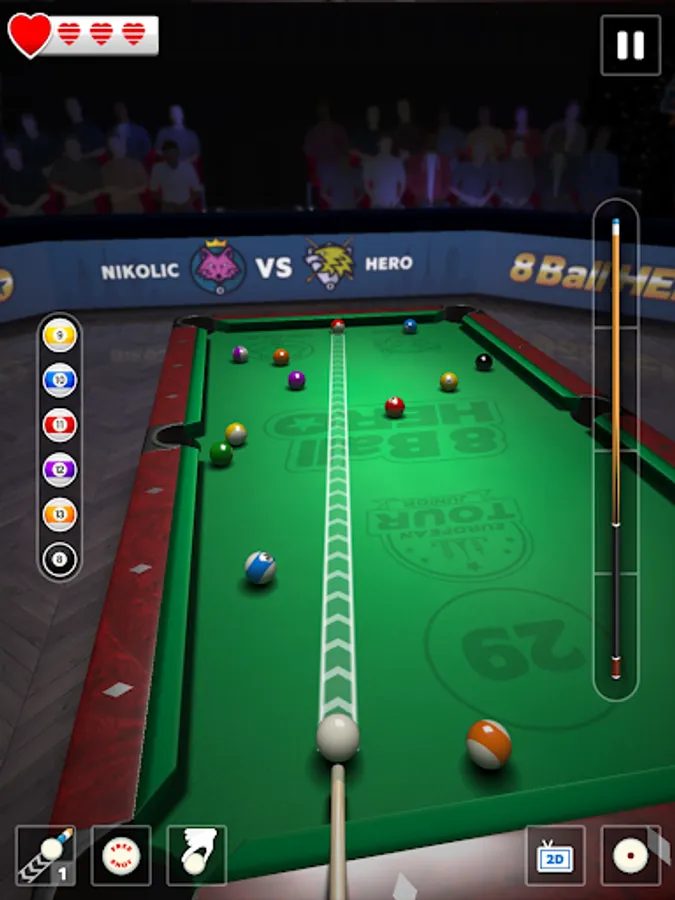 Become a pool superstar in 8 Ball Hero! Travel the world, compete against rivals and pot your way to victory. Can you use your cue skills to complete challenges and triumph in the most prestigious tournaments? The best challengers await! Will you pocket the black, create a legacy and become an 8 Ball Hero?