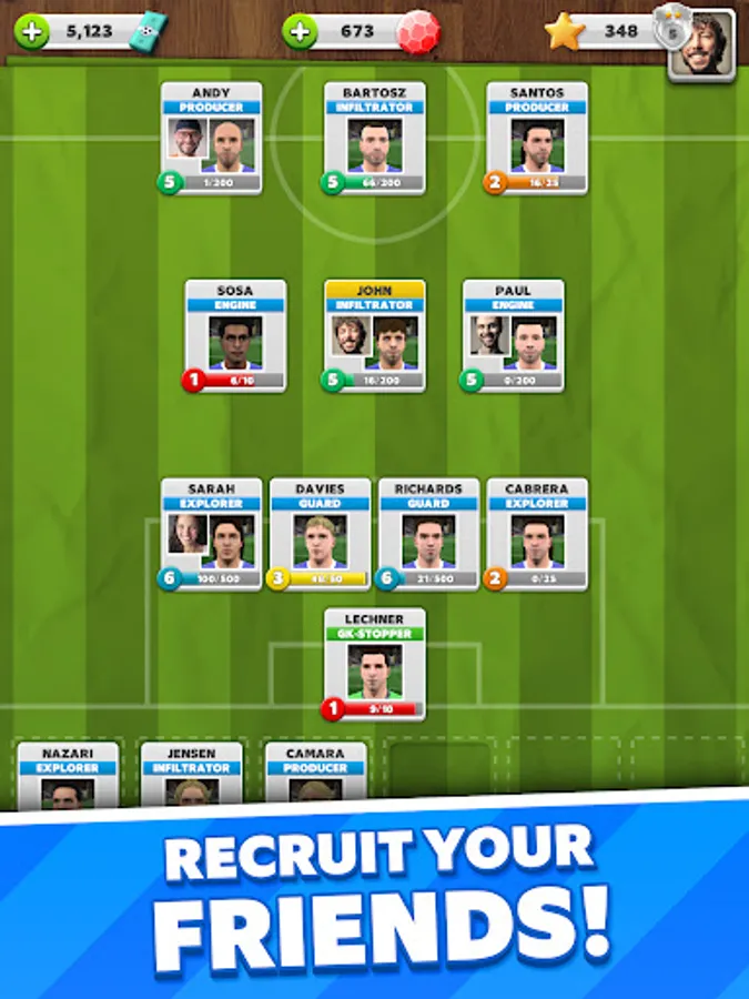 Collect and upgrade unique player types, set your formation, then use your skills to gain promotion!