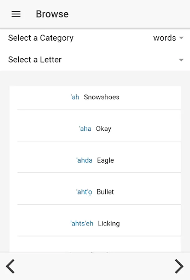 The Tse'Khene (McLeod Lake) language app is a media-rich bilingual dictionary and phrase collection comprised of words and phrases archived at the online Aboriginal language database FirstVoices.com. Word and phrase definitions are illustrated with audio recordings, and images. Users can generate their own thematically organized flashcards and bookmark words or sentences to create their own lists.