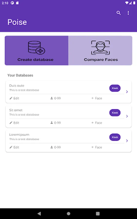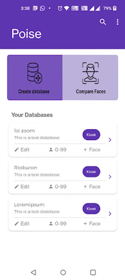 -The app can has a kiosk mode where it continuously scans face images and verifies the face with face database.