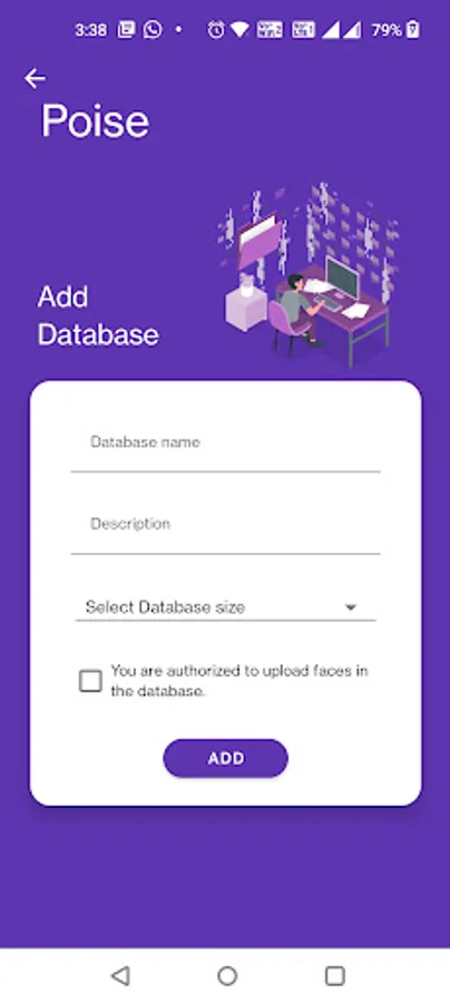 -The app verifies the face with database and shows the result whether the face exist in database or not.