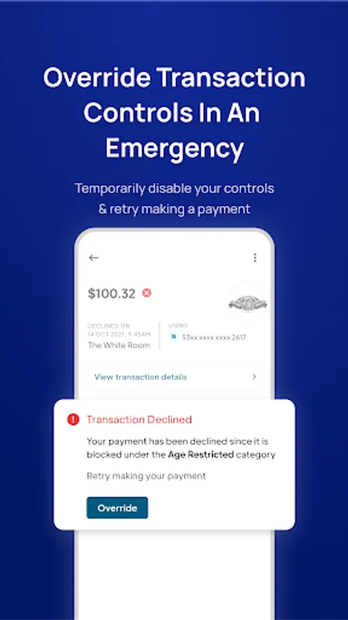 Allows a cardholder to control how, where, and when their payment cards are used via their mobile device. Turn your card on or off with the touch of a button, set location based controls, block international transactions, set spending limits, and more.