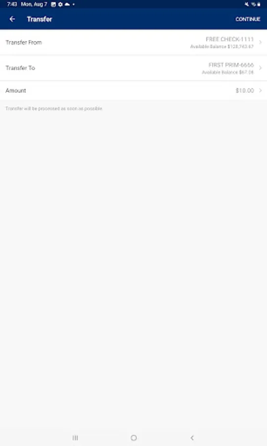 Find nearby Branches and ATMs using the device’s built-in GPS. Additionally, you can search by zip code or address.