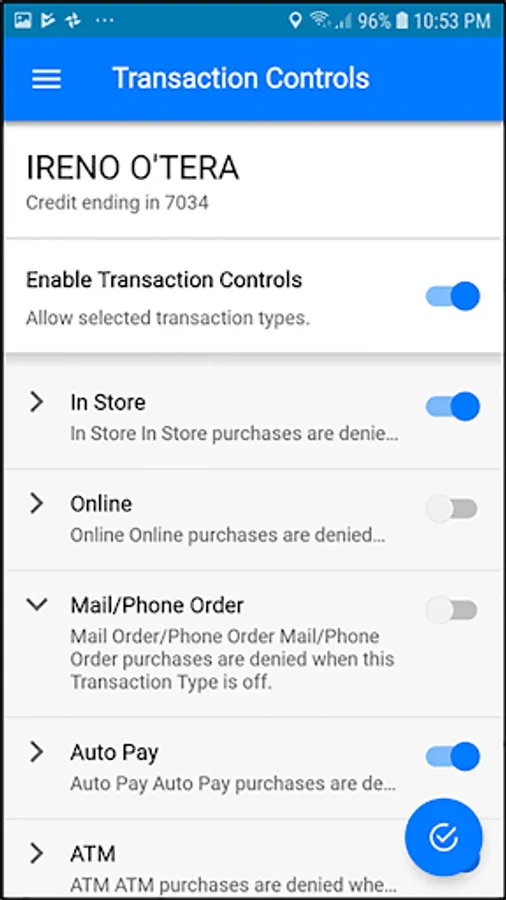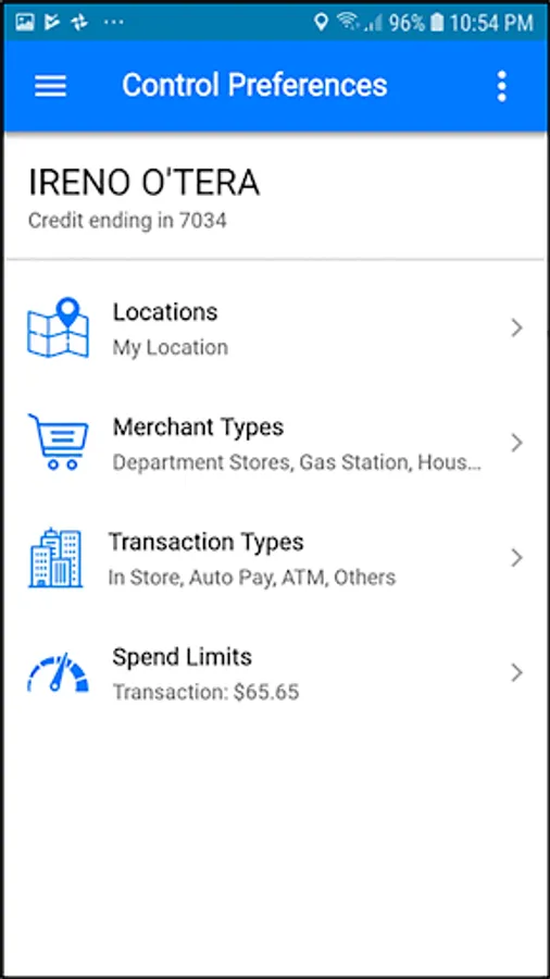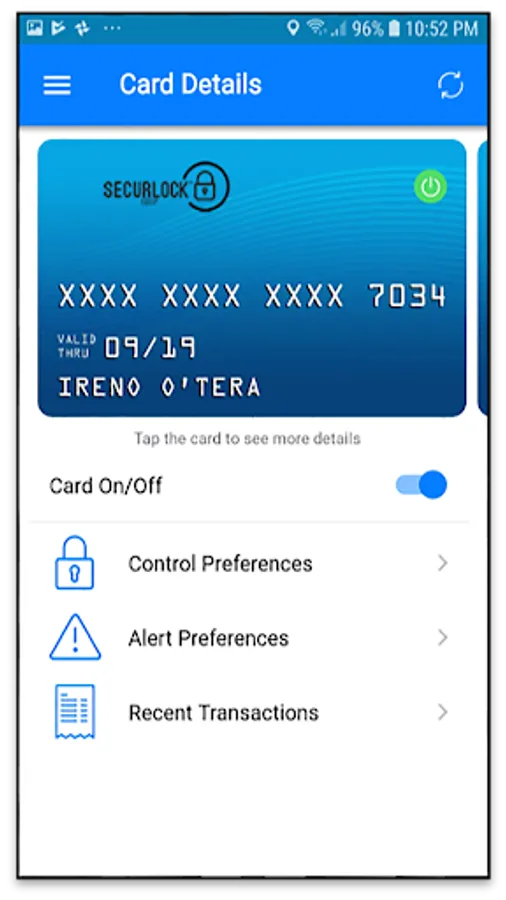 Allows a cardholder to control how, where, and when their payment cards are used via their mobile device. Turn your card on or off with the touch of a button. Set location based controls. Block international transactions or set spending limits.