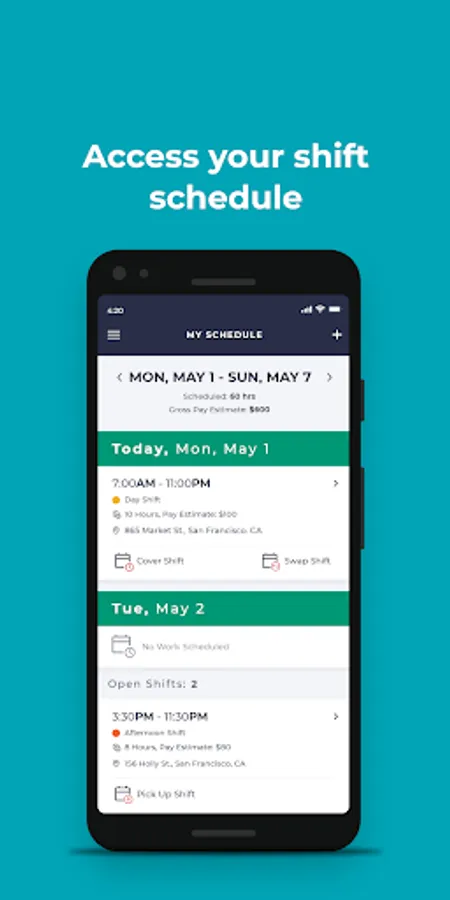 Enable your employees to quickly book time off from their mobile device or from the web. Managers can stay on top of employee availability by viewing requests in real-time and approving or rejecting requests.