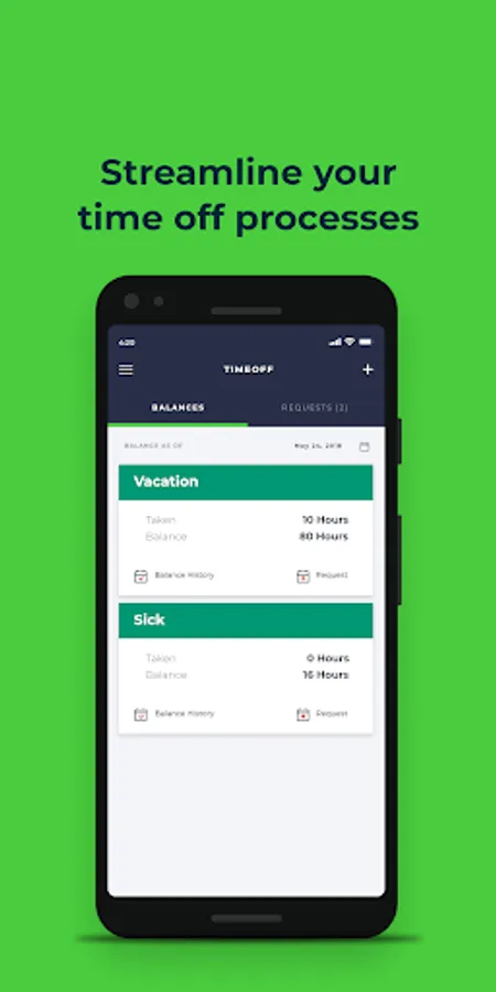 Define any time off rule appropriate for your business - sick leave, vacation, paid time off (PTO) and set accrual policies. Automate these policies and free your managers and HR from unnecessary administrative overhead.