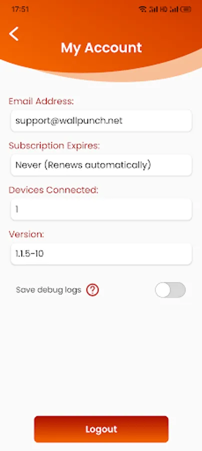 Just log in with your email address and password, and tap "START". If you have any problems connecting, send us a message using in-app Live Chat or email us at support@wallpunch.net