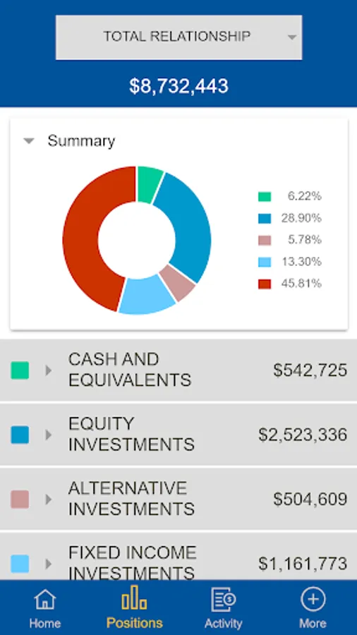 • A snapshot of your total portfolio on an aggregated basis or by individual account.