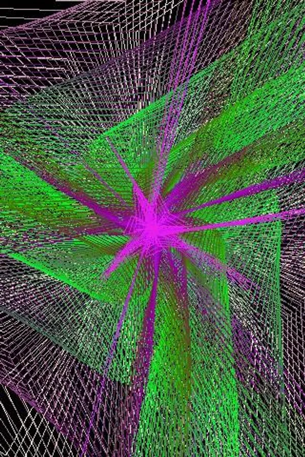 Normally you start the angle from 0 and go all the way around to 360 degrees incrementing by some small amount. When you skip faster around the circle in a regular interval (say every 80 degrees), you get something interesting. A Maurer Rose http://en.wikipedia.org/wiki/Maurer_rose