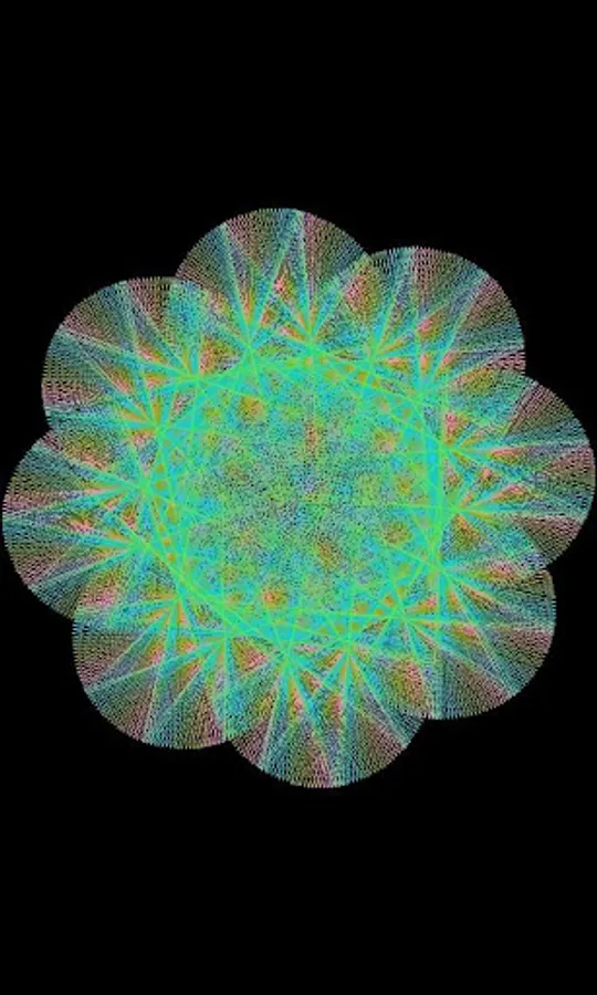 Normally you start the angle from 0 and go all the way around to 360 degrees incrementing by some small amount. When you skip faster around the circle in a regular interval (say every 80 degrees), you get something interesting. A Maurer Rose http://en.wikipedia.org/wiki/Maurer_rose