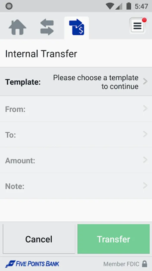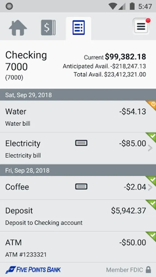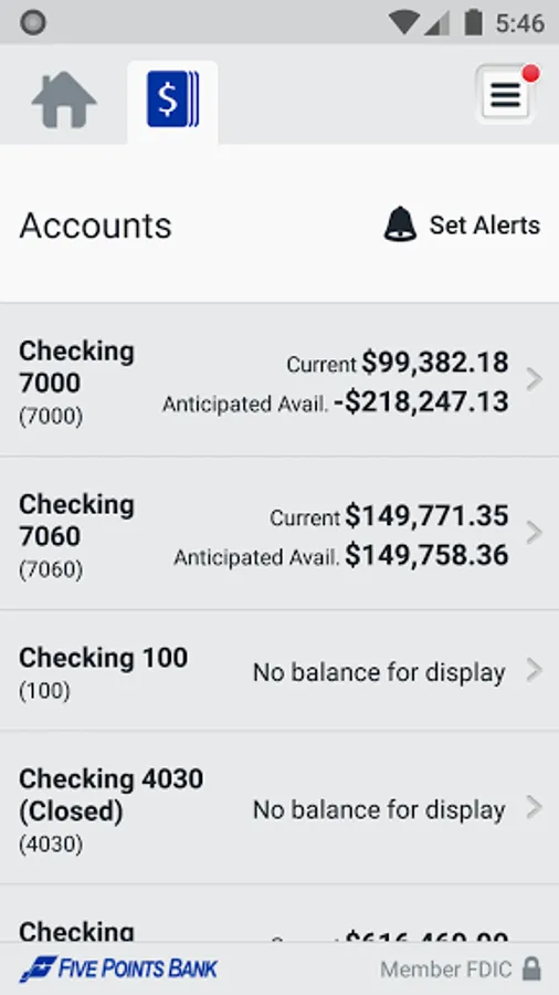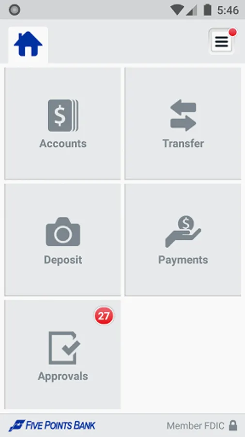 Getting started is easy. Simply download the app and sign on with your Five Points Bank Business Online user credentials. [No additional fees apply.*]. For more information about Five Points Bank Business mobile services, please visit 5PointsBank.com or call us at 800-5POINTS. *Carrier’s data rates may apply.