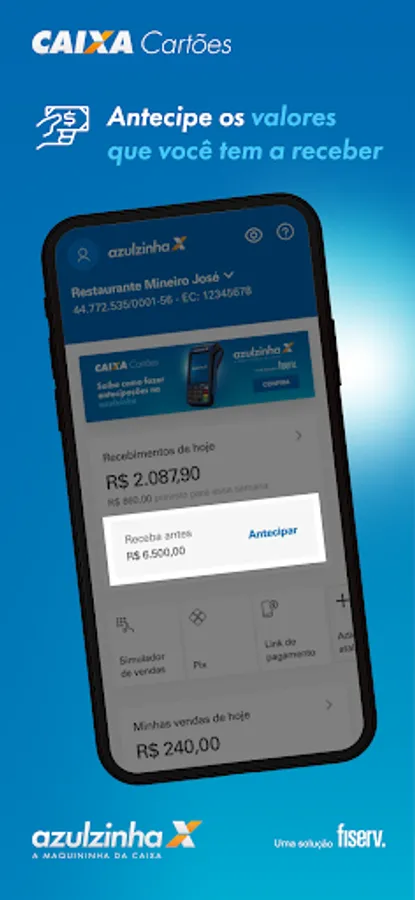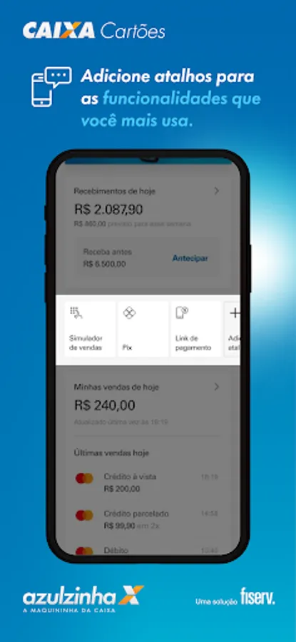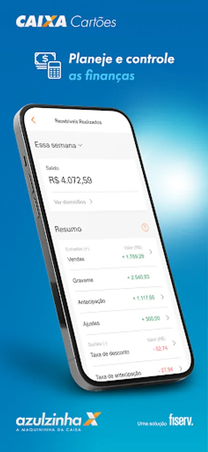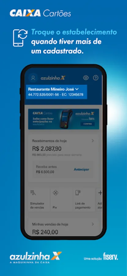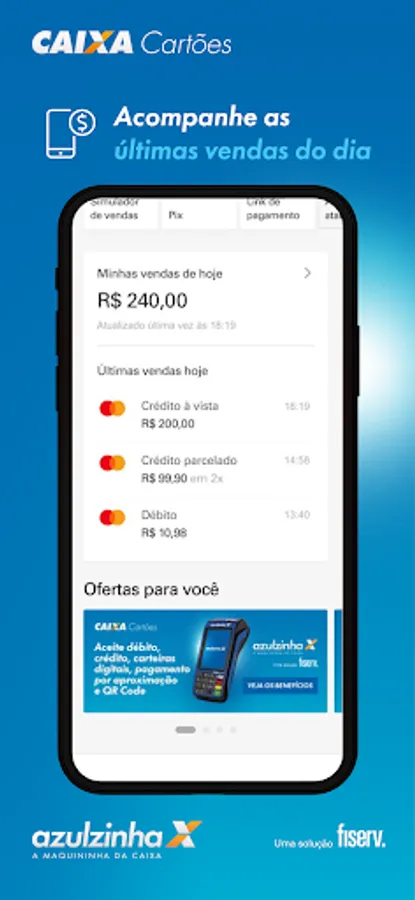 With the app, you manage your sales, monitor payments and receipts made by credit and debit card through sales made at CAIXA machines.