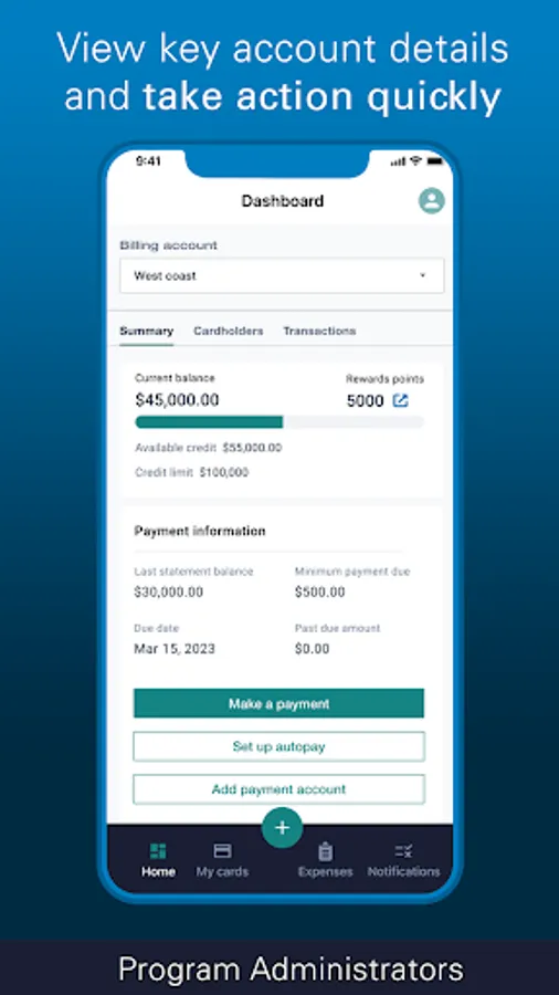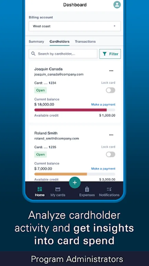 -- Comprehensive analytics that provide complete program visibility and drive better business decisions with insights into spend trends, merchant spend and credit line use