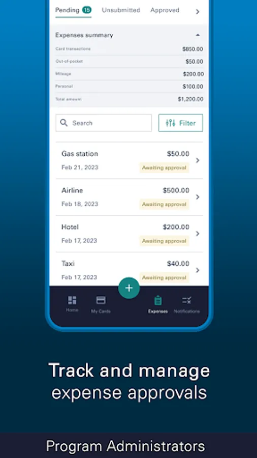 -- Employees to make payments, view transactions, request a card and submit expense reports