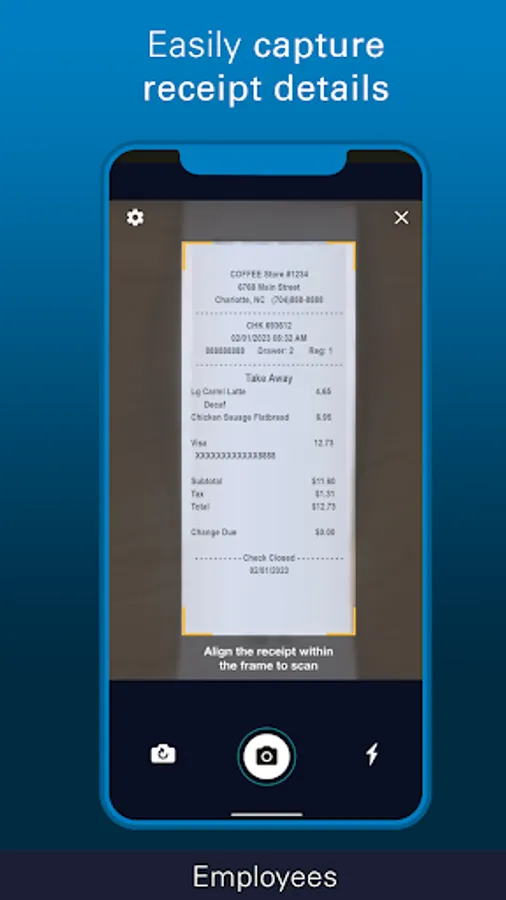 -- Intelligent receipt capture with card and transaction data auto-population, even before the transaction posts