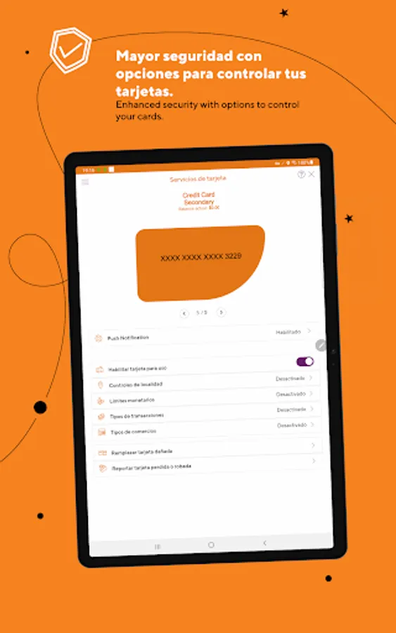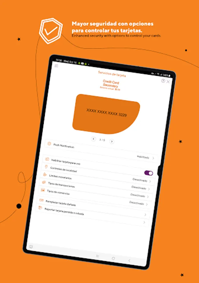 ∙ Control Mejorado de tus Tarjetas: Gestiona tu tarjeta con funciones como el bloqueo y los cambios de PIN para mayor seguridad.