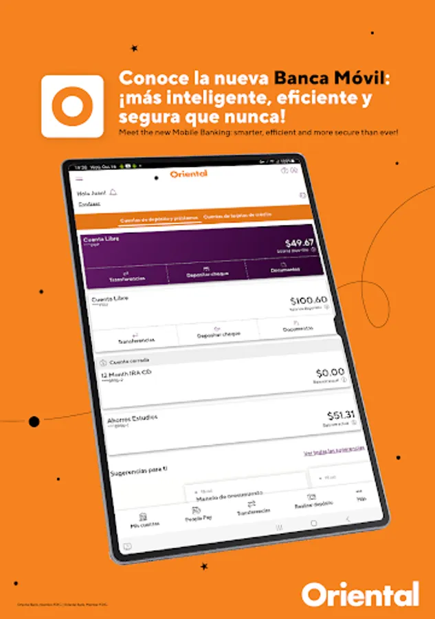 Experience a smart mobile banking with Banca Móvil from Oriental Bank!