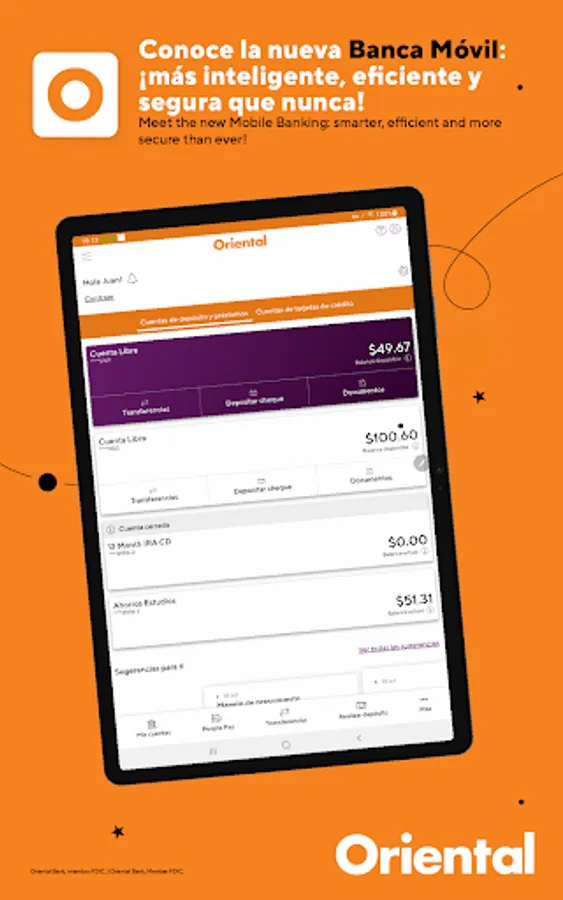 Banca Móvil de Oriental Bank es gratuita y segura. Miembro FDIC.
