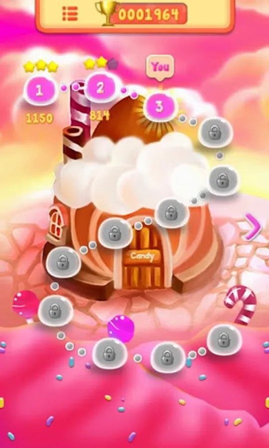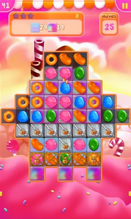 Match candies and collect them. Create rows of columns of 3 or more Candies of the same color to collect or blow them.