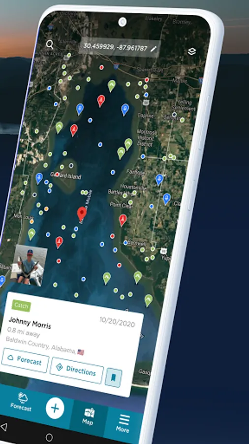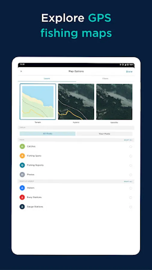 • Only interested in seeing fishing spots or catches near you? You can set your fishing region from 10-500 miles from your specific location