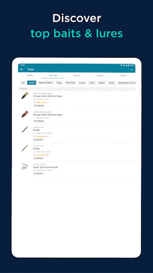 • Stop the guesswork and see aggregated catches with top gear recommendations