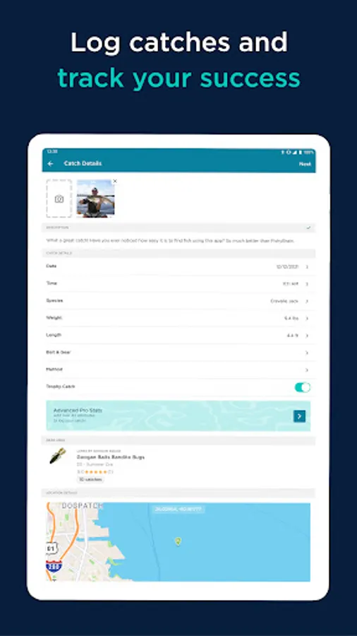 • Log & track your catches with over 45 catch attributes including real time weather conditions