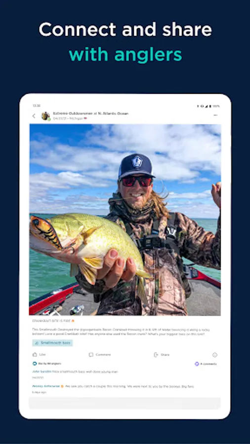 • Create or join fishing groups with other anglers who share the same fishing interests