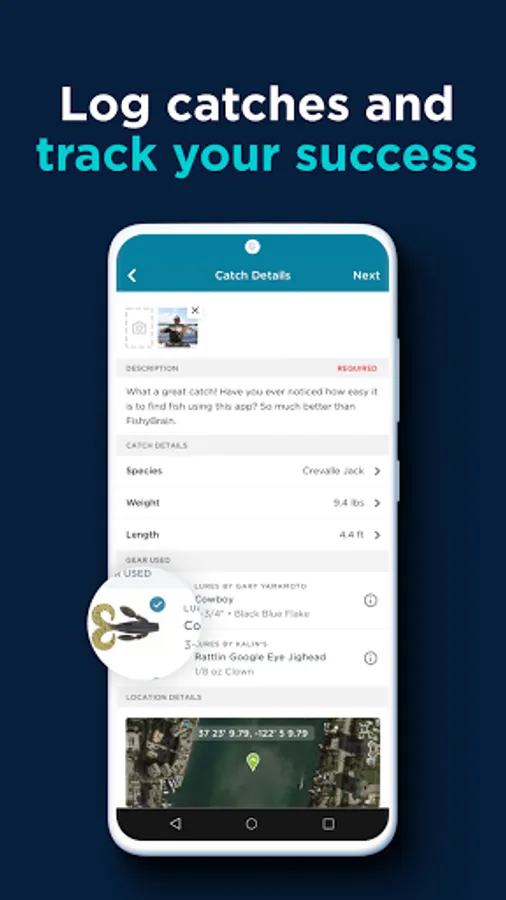 • Automatically log a catch with date, time, weather conditions, water temps, sun & moon phases & more