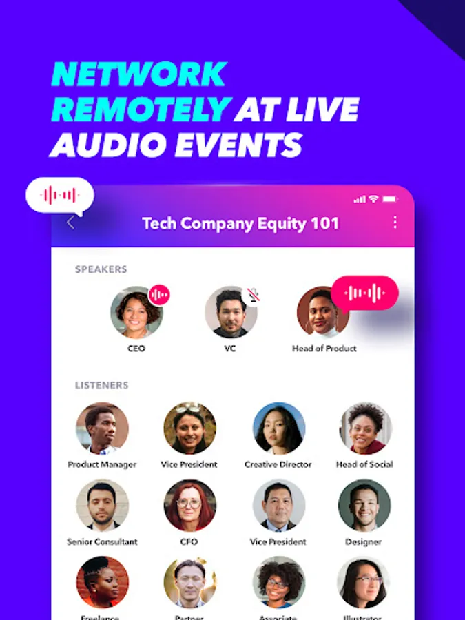 Join live audio-only conversations and get to know others in your professional communities. Have conversations with coworkers and colleagues, or listen to industry leaders share their thoughts on different topics with the ability to join the conversation with them!