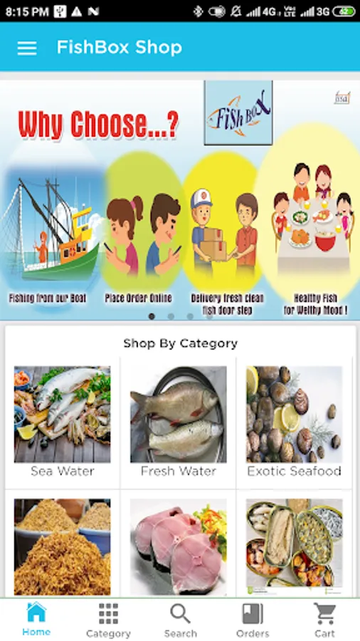 Fishbox :The fish that we don't farm, we buy directly from fishermen! We teach them how to keep the catch fresh on its journey back to the shore. Here, we buy only the freshest catch, which we then cart to our factory in refrigerated trucks.