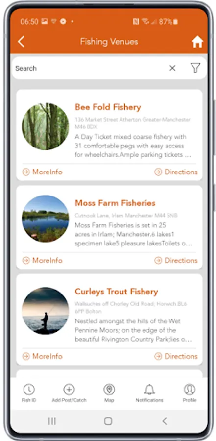 • Search for Fishing Venues, Fishing Clubs and Tackle shops in your local area on our interactive map.