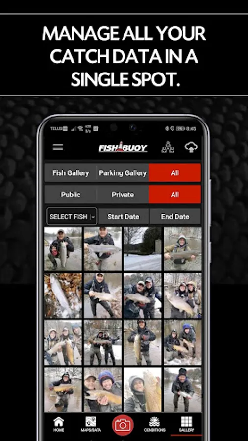 Create private Fishing Groups and share your fish catches with your close buddies. Each photo posted offers details about water conditions, weather conditions, fish species, bait color, and location. Groups also help anglers organize their catch by Lake Name, Species, etc. NEW - show individual group photos on a map!