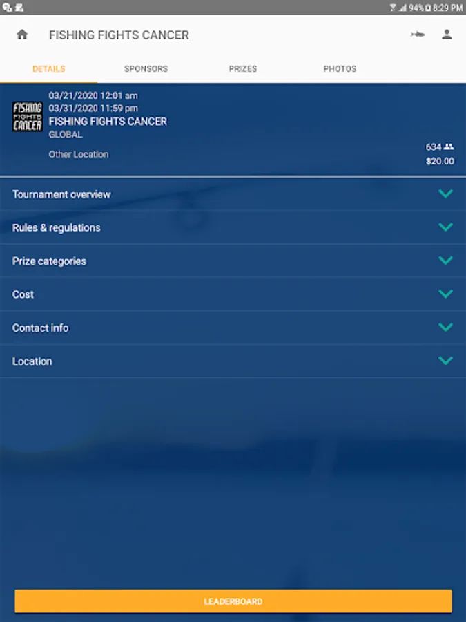 It is free to create a tournament. Anglers pay a small fee when they join. (All pricing policies are subject to change.)