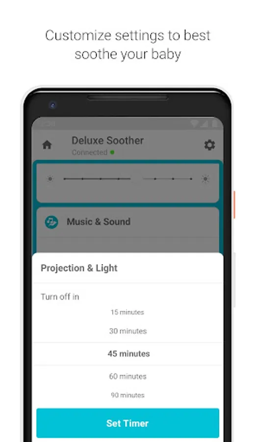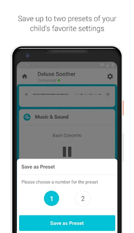 The Fisher-Price® Smart Connect™ app lets you customize and control all the soothing features of any Smart Connect™ nursery gear, including swings, bassinets, and soothers, right from your smart device—without disturbing your baby! Find the soothing combination that works best for your baby and easily adjust as their preferences change (and change again).