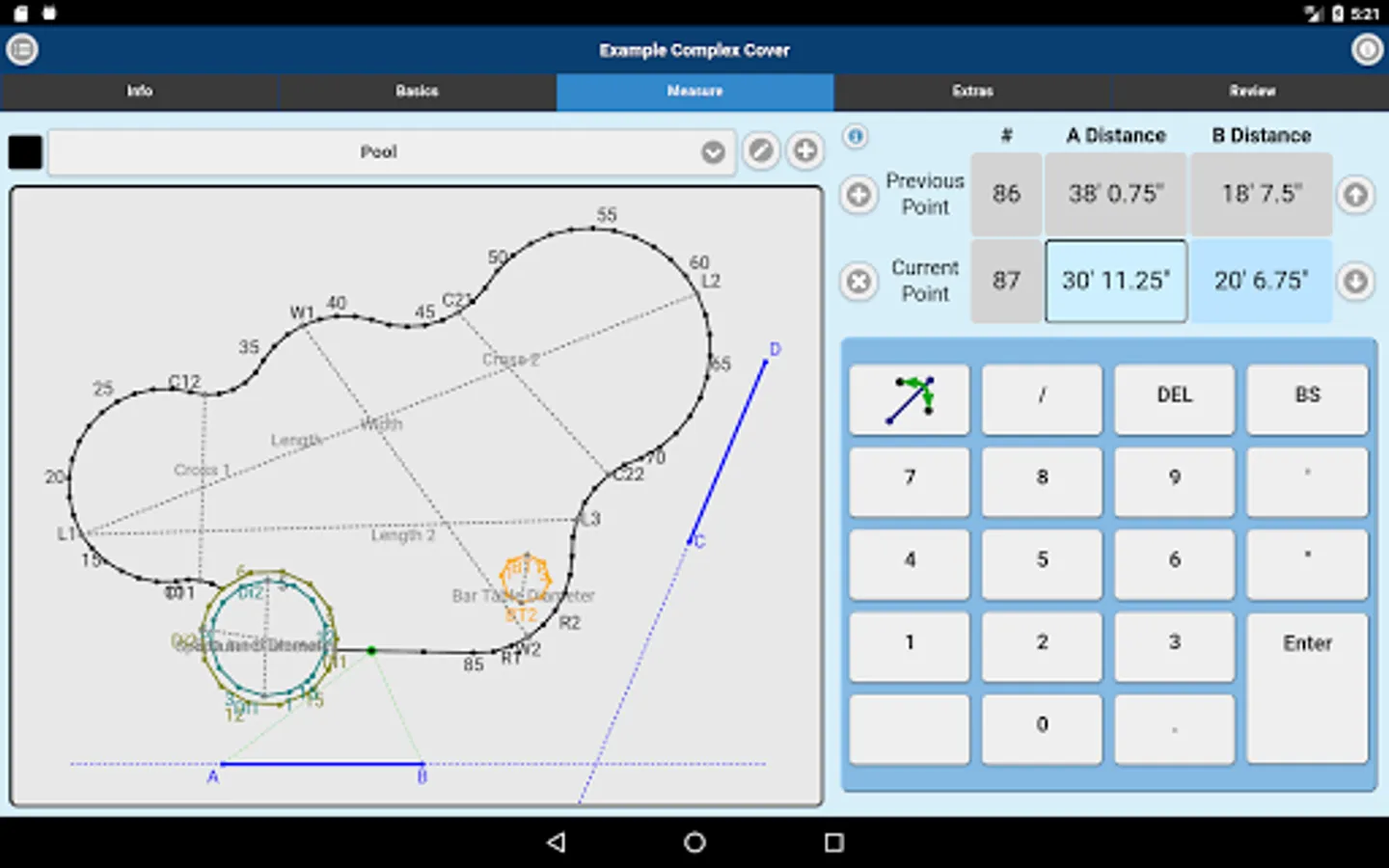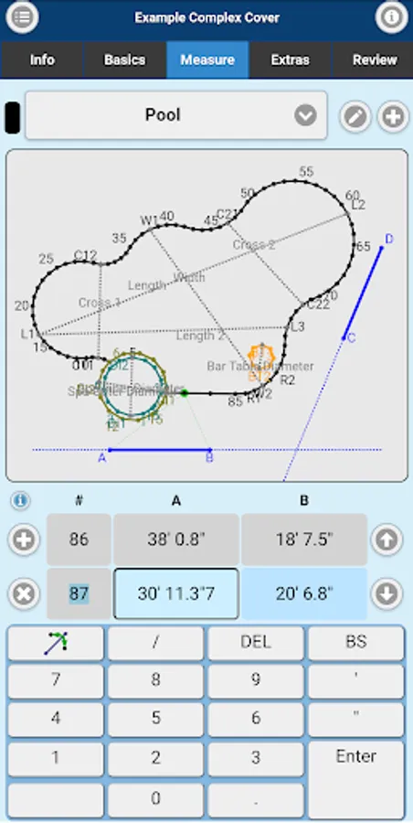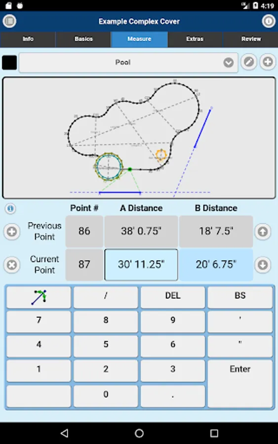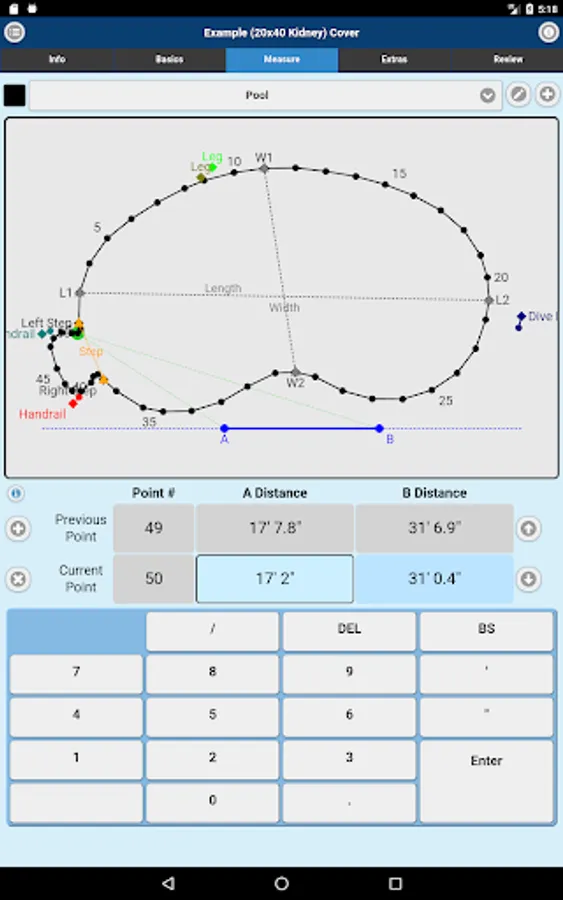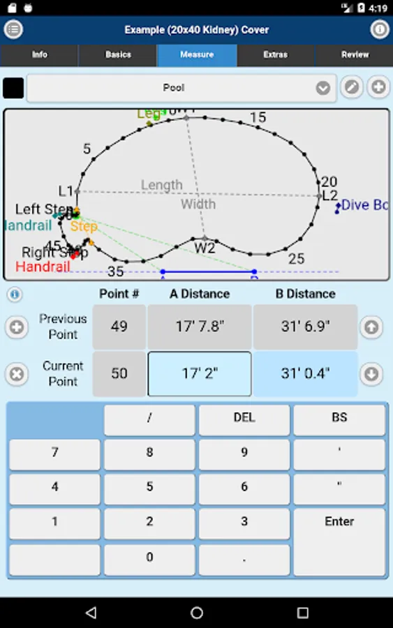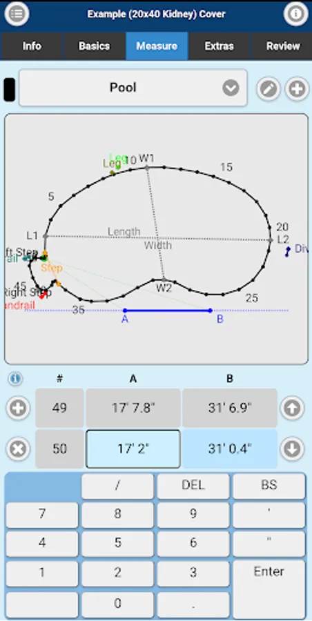 Measuring for replacement liners and safety covers made easy. Imperial On Point Measuring App accepts A-B triangulation data for its measurements. You can also submit Rectangle or Oval Pool Shape projects. Simply measure, enter points into the Imperial On Point Measuring App, select the material and submit for quote or order.