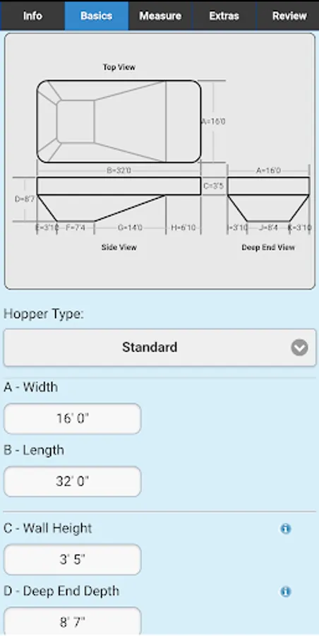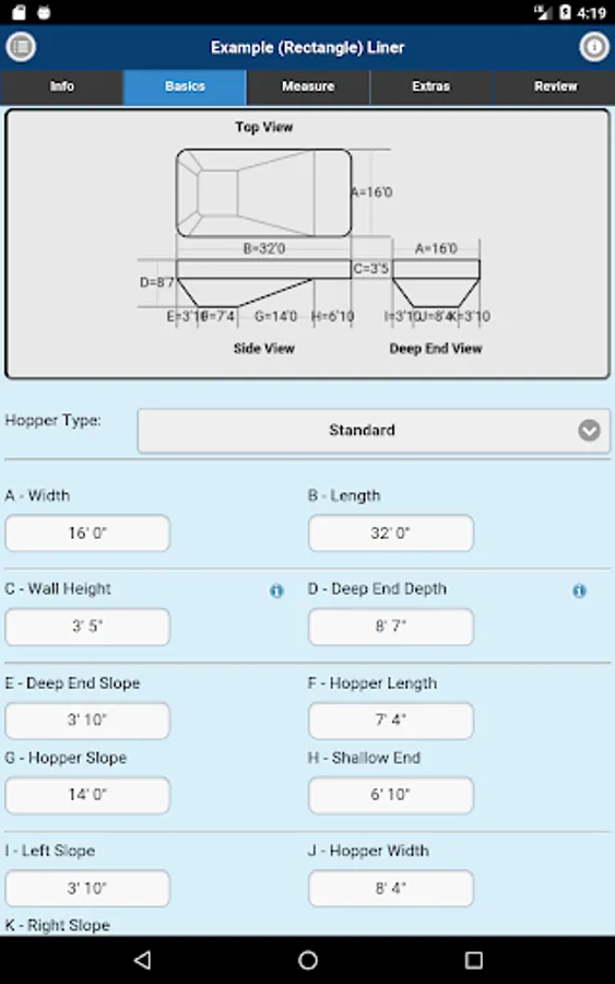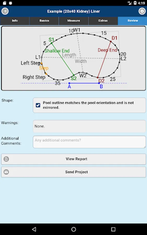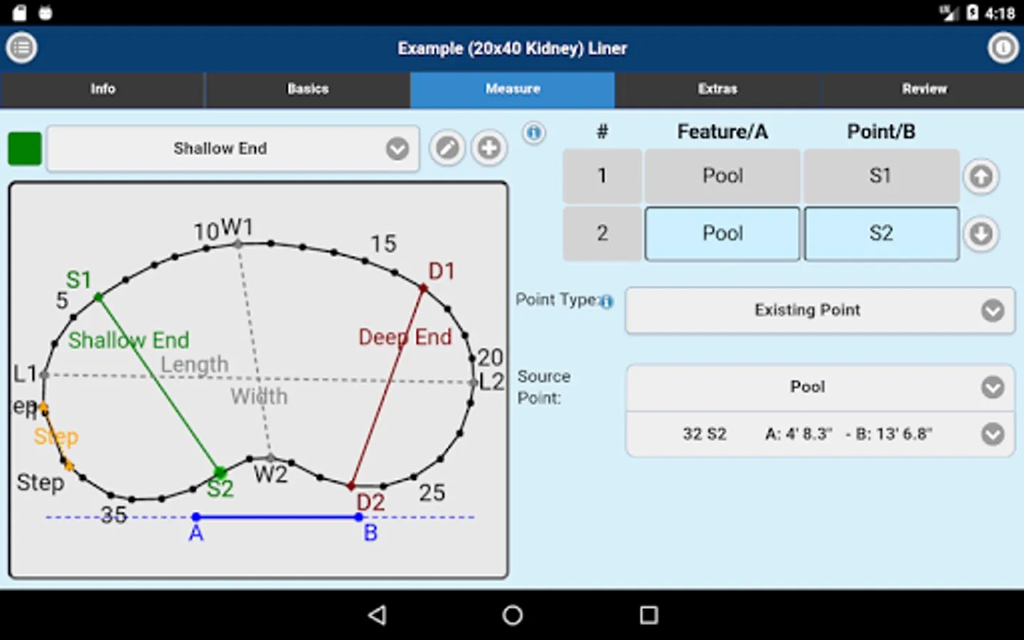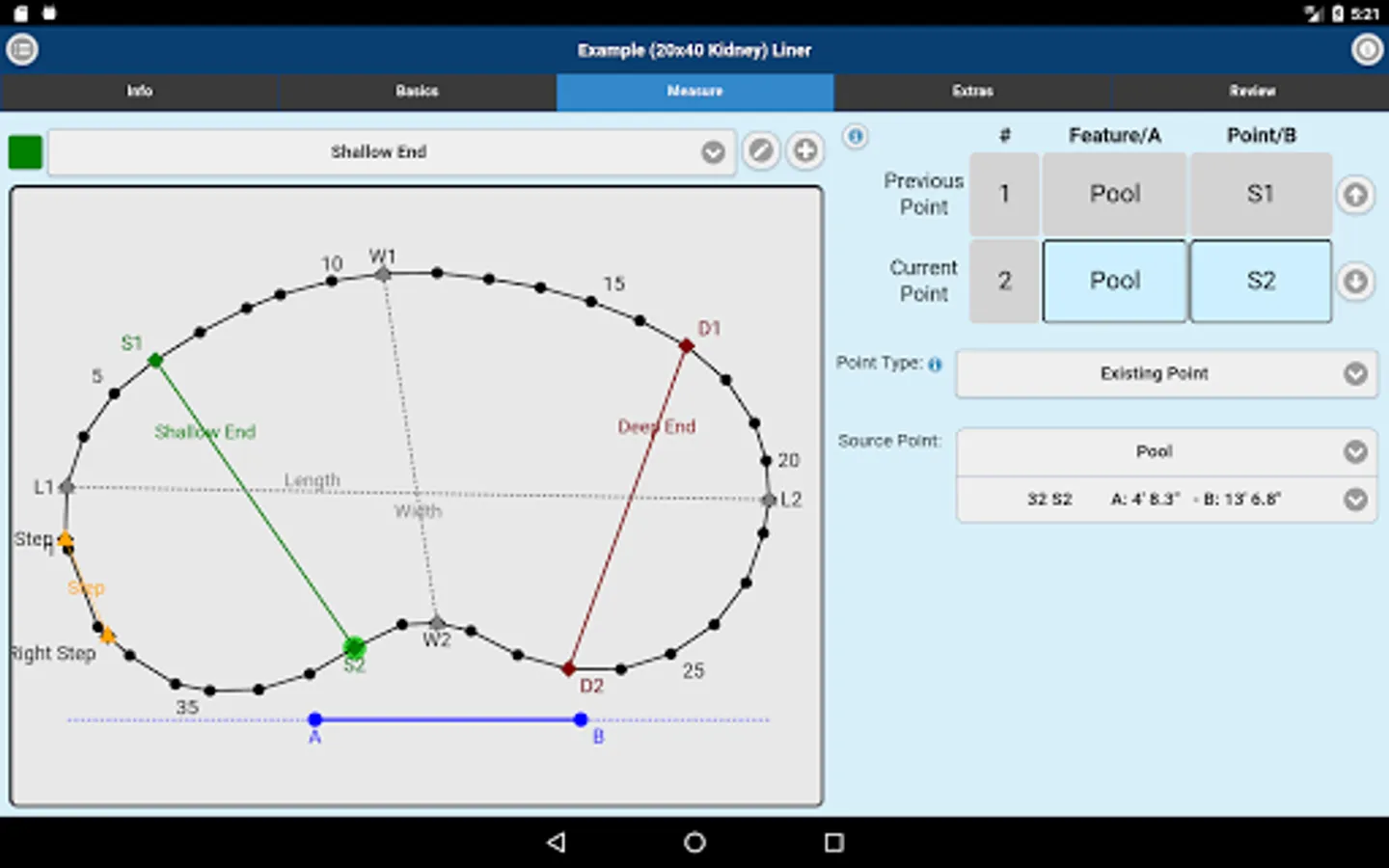 Measuring for replacement liners and safety covers made easy. Imperial On Point Measuring App accepts A-B triangulation data for its measurements. You can also submit Rectangle or Oval Pool Shape projects. Simply measure, enter points into the Imperial On Point Measuring App, select the material and submit for quote or order.