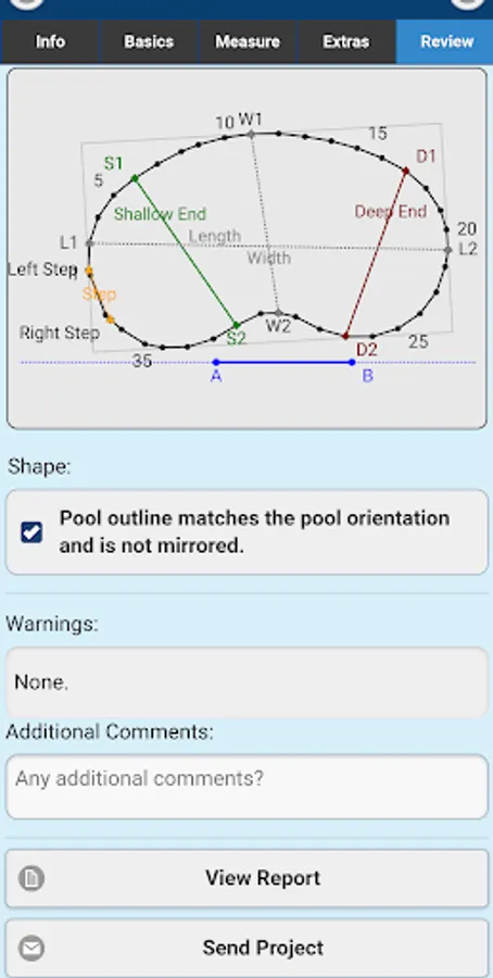 Imperial On Point Measuring App provides immediate feedback on the measurement data by drawing the shape as the points are entered. This visual feedback allows you to quickly identify and correct any potential issues with the measurements. An intelligent warning system works to validate the measurements against common issues and provides intelligent feedback to help avoid them. This saves you from having to go back and measure again.