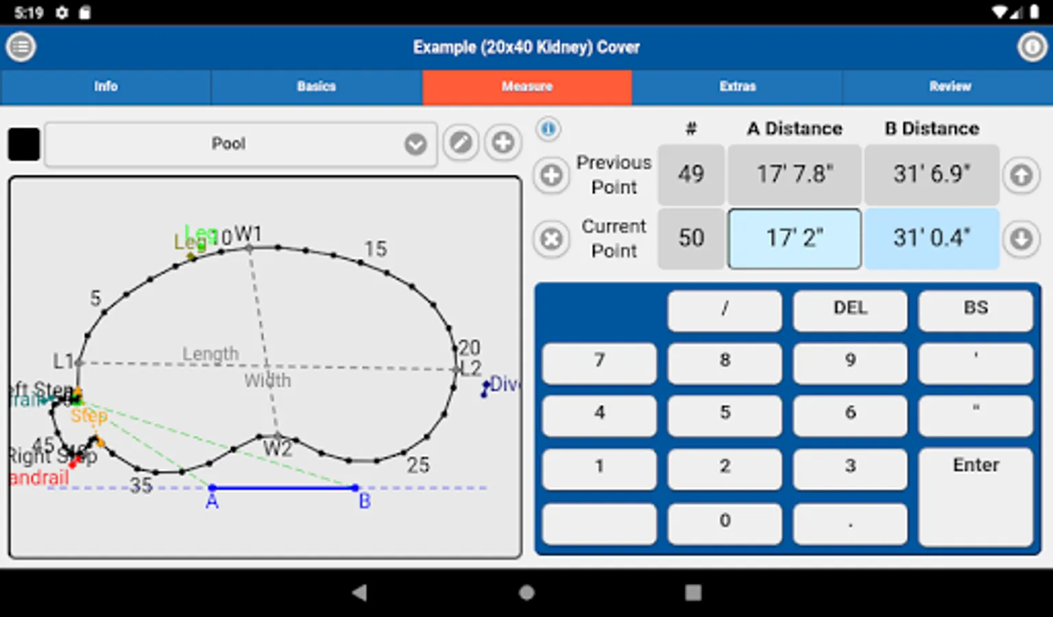 3. Pool side dimension collection and electronic submission to Pool Fits for a seamless interface with your line and cover order.