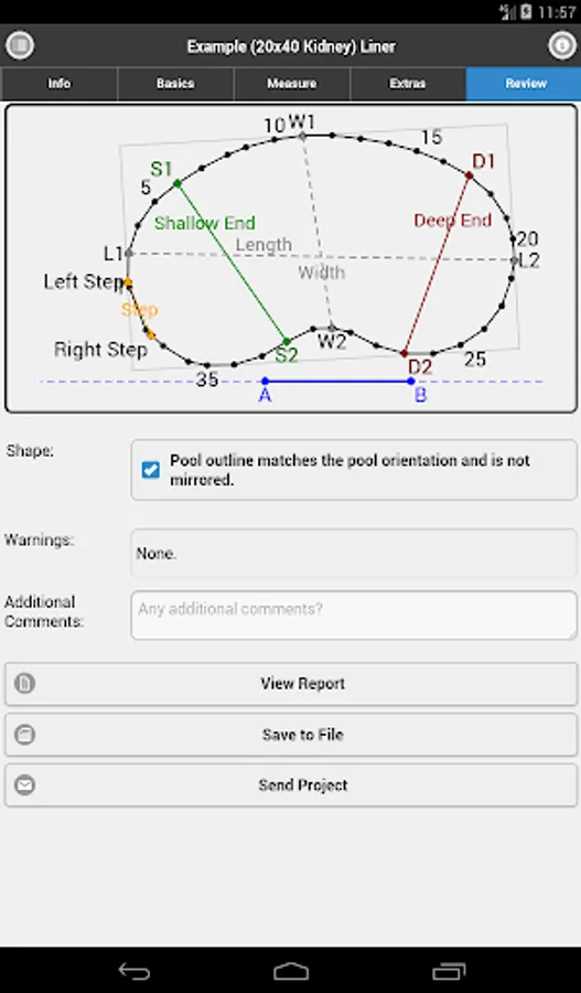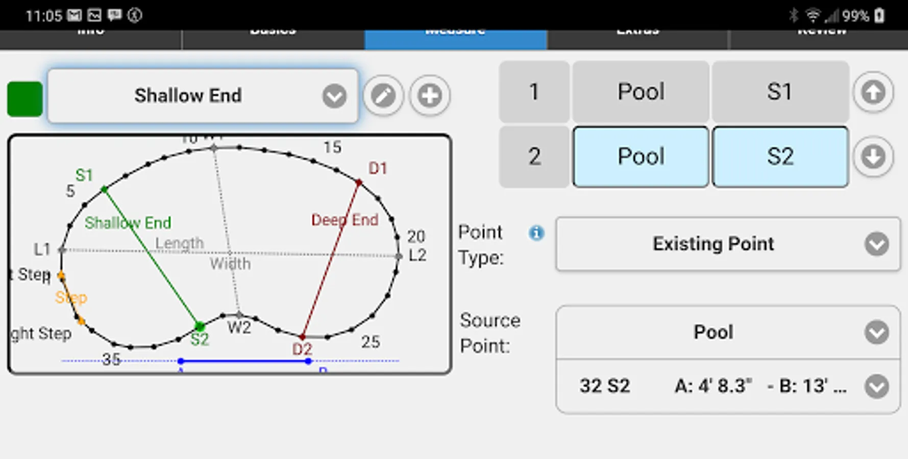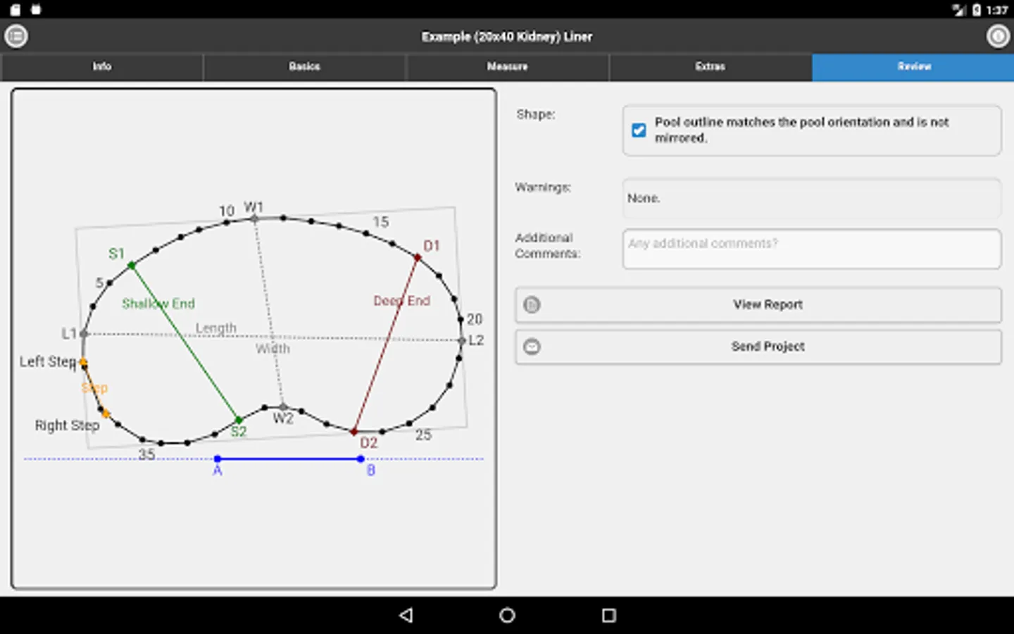 Note: Pool Measure Pro uses a pay-per-pool pricing structure. You can measure any number of pools but must purchase an export for each project you wish to send. Additional pool exports can be purchased using in-app purchases from within the app. Sending projects to any of our preferred vendors is free!