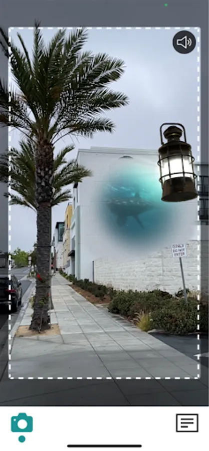 Once in safe zone, aim your phone at the mural Please remain aware of your surroundings while using this app. DO not use app while in the street. Obey all ordinances and traffic laws.