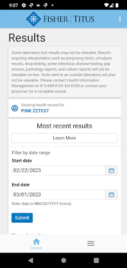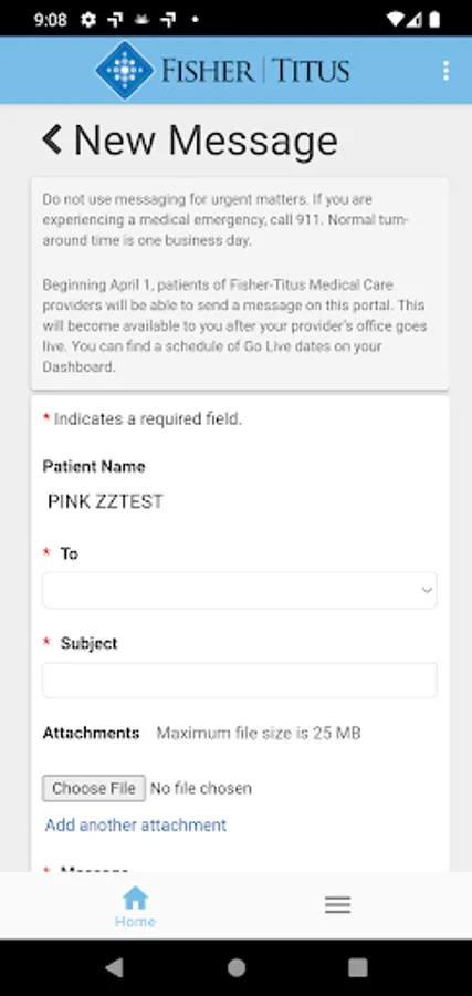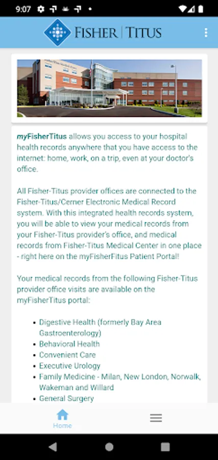The myFisherTitus Patient Portal app connects you, the patient, with your healthcare provider and health record. The app enables you to view upcoming appointments, lab results, and view medical history, as well as send and receive secure messages with your provider.