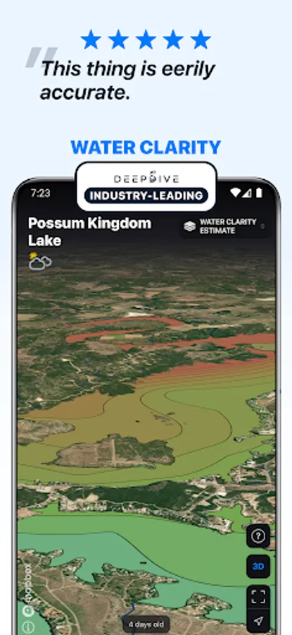 Deep Dive features exclusive water clarity maps for over 100 top lakes ... and together with our lake weather forecast you will have a competitive edge when it comes to catching fish.